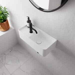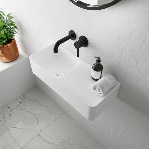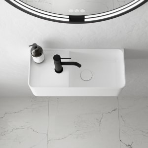 Kubo 50SR - 50x30, Vask til højre, Matt White SolidTec®