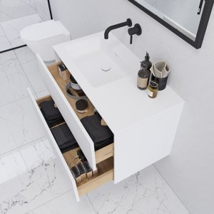 Pulcher Mood 90L Soft - Bathroom furniture 90x46 cm, Matt white w/ SolidTec® sink