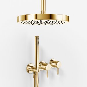 Semplice SBR801 S05 - Rain DeLuxe Ø20 cm, PVD Brushed Steel Shower set with Easy Clean head shower, switch, shower arm from wall and Stick hand shower set.
