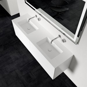 Block Soho 140D - Vaskemøbel 140x46, Mathvid m/ SolidTec® dobbeltvask
