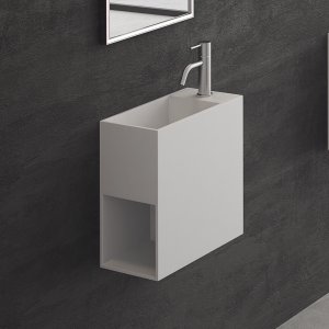 Boxo 45S - 45x30 cm Håndvask med opbevaring, Mathvid SolidTec®