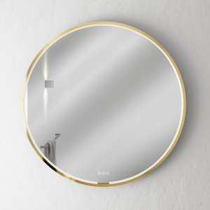 Pulcher Soho Mirror PSM-8080 - 80x80 cm. Spejl m/lys og lysstyring, Mat Messing farvet ramme
