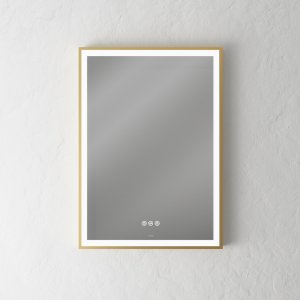 Pulcher Soho Mirror PSM-5070 - 50x70 cm. Spejl m/lys og lysstyring, Mat Messing farvet ramme