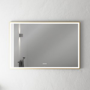 Pulcher Soho Mirror PSM-1280 - 120x80 cm. Spejl m/lys og lysstyring, Mat Messing farvet ramme