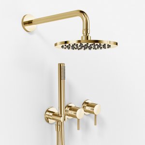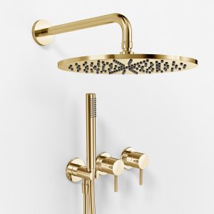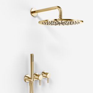 Semplice SBR801 S07 - Brusesæt Rain DeLuxe Ø30 cm, Væg, Poleret Messing Natur