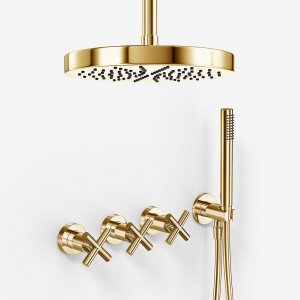 Udløb armatur: 1/2"MUF - afgang opad er til hovedbruser (eller kartud) og afgang nedad er til håndbrusersæt.