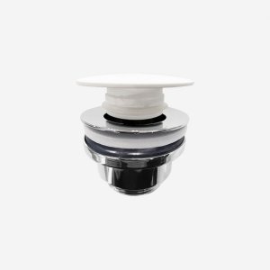 Den originale Waterproof 70L vask vist med SolidTec push-open bundventil, til det stilrene badeværelse i lækker og eksklusiv mathvid udførsel.