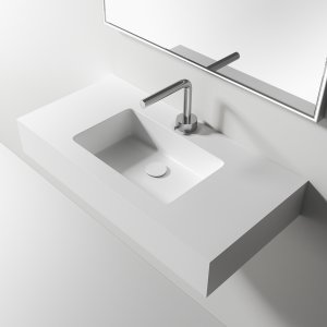 Udført af ren massiv mathvid SolidTec, et eksklusivt solid surface produkt, som er ekstrem solidt.