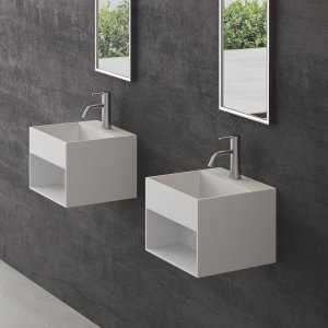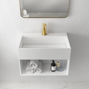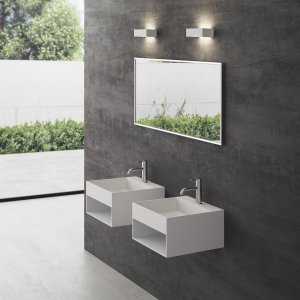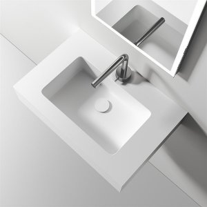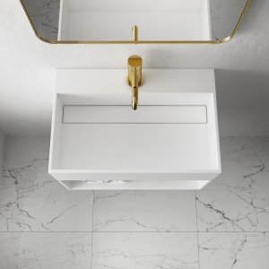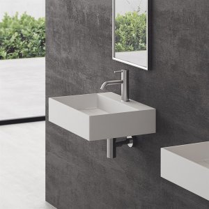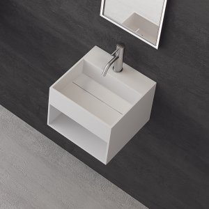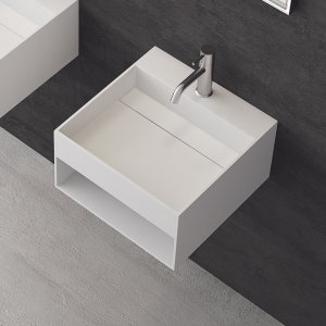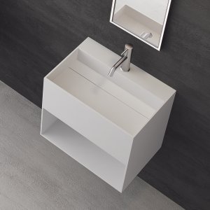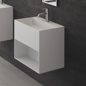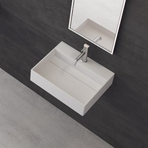 Kubo 60 - 60x40 cm mathvid håndvask. Eksklusivt udført i massiv mathvid SolidTec®.