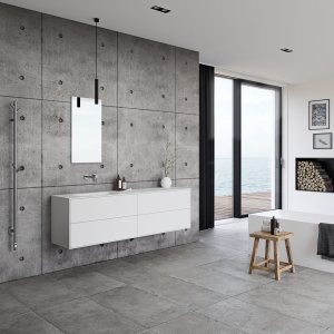 Blok Soho 180L - Vaskemøbel m. 4 skuffer med soft-close og vask til venstre, Mathvid Mål: 180 x 46 x 51,2h cm