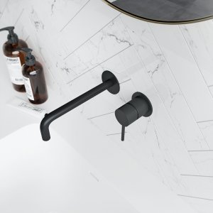 Semplice SHV102 - 1-grebs vægmonteret håndvask blandingsbatteri med 22 cm tud, Matsort